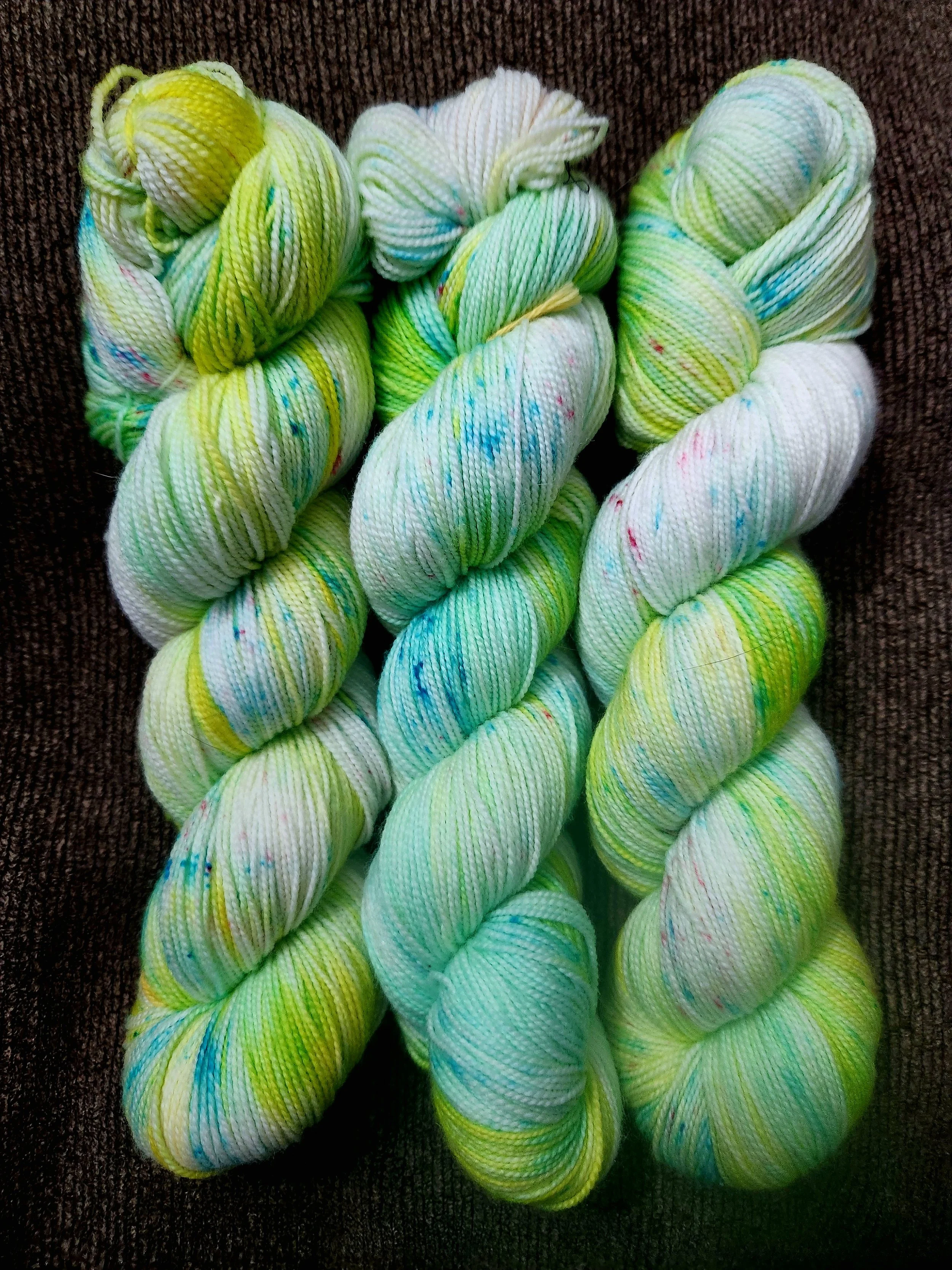 This colorway includes mint, white, yellow pink and blue speckles.