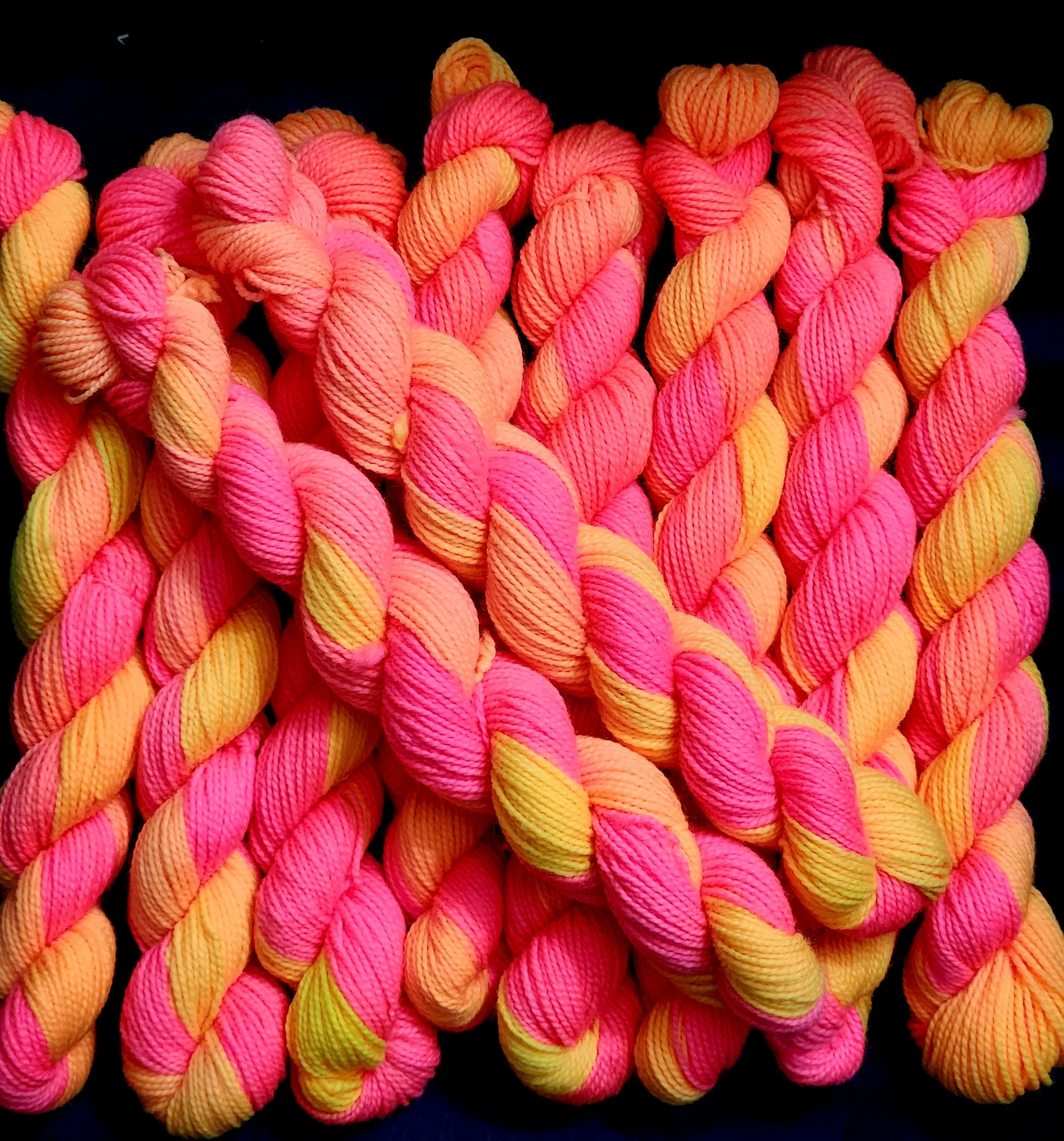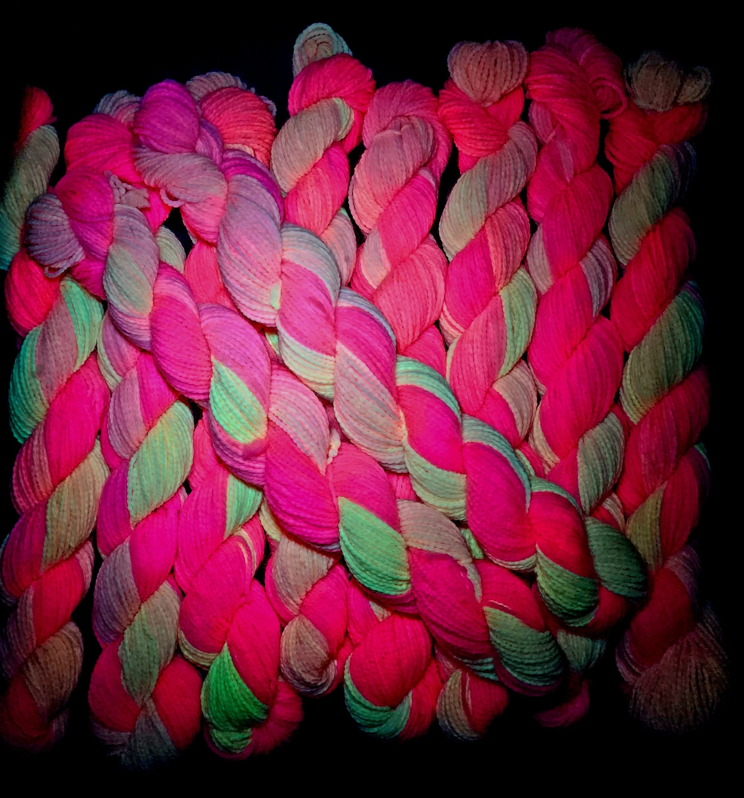 Fun & Funky variegated mini skeins that glow under UV light..